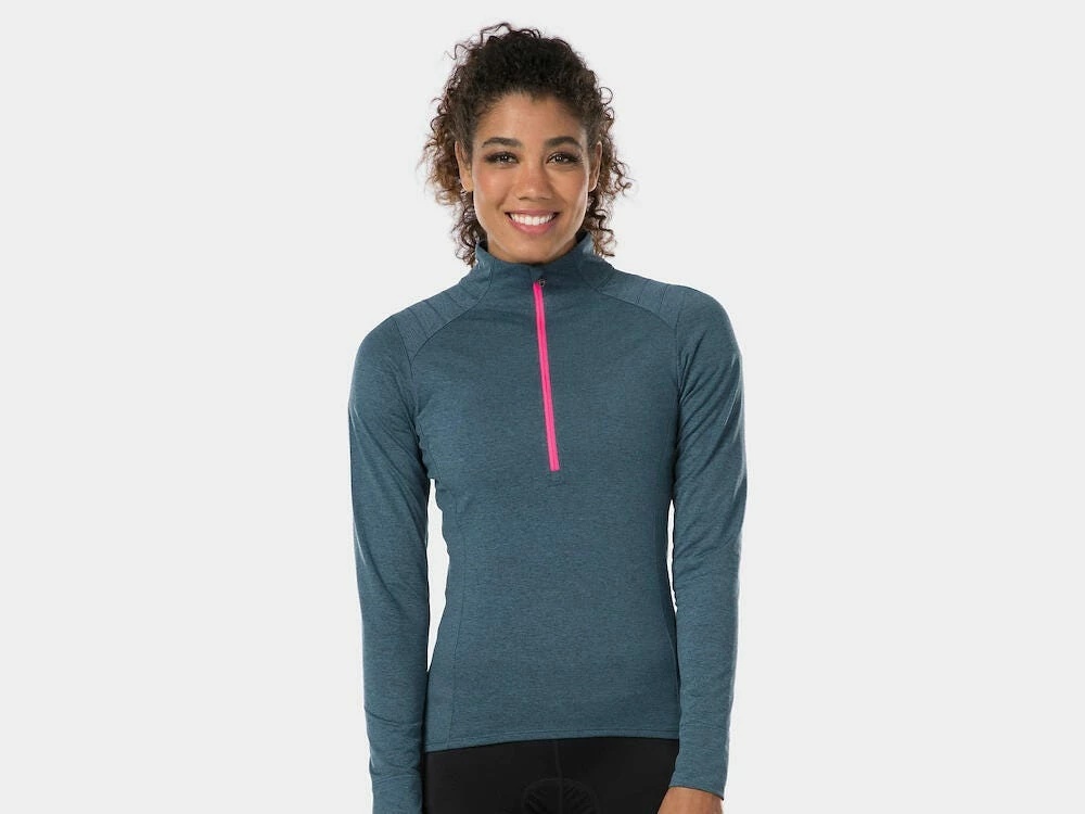 Le maillot thermique à manches longues pour femme Vella de Bontrager offre confort et chaleur sans compromettre votre style. Doté d’une grande poche arrière à glissière, il permet de garder vos objets essentiels à portée de main. La poche sécurisée maintient votre téléphone en place afin qu’il ne rebondisse pas pendant la conduite. Vous pouvez dézipper le demi-zip pour une meilleure ventilation lors de longues montées ou lorsque les températures montent.