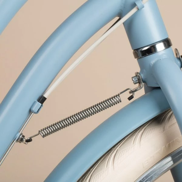 Un ressort de rappel de direction a été ajouté entre la fourche et le cadre pour stabiliser votre vélo, panier/plateforme chargée, lors de son utilisation ou du stationnement.